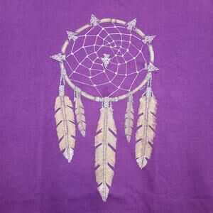 Vintage 90s Dream Catcher graphic T-shirt single stitch USA made boxy fit men’s L purple Native style arrowhead feather print 50/50 cotton poly