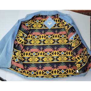 Vintage 90s Duke Haband Denim Full Zip Aztec Lined Jean Chore Barn Coat Jacket XL