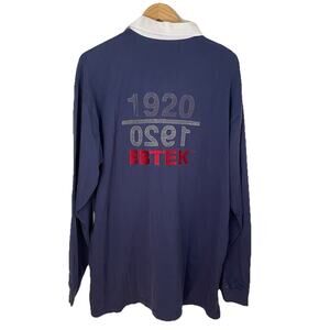 VTG 90s Eddie Bauer EBTEK Blue Rugby Polo 1920 Embroidered Ivy League LRG Tall