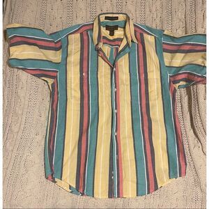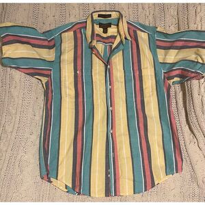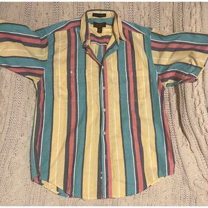 VTG 90’s Eddie Bauer Northwest Chambray Bold Striped Short Sleeve Button Down Co