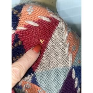 VTG 90s Eddie Bauer Wool Blend Geometric Patchwork Cardigan Sweater Sz Large