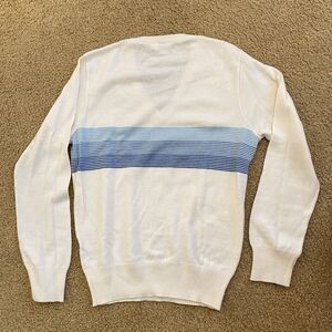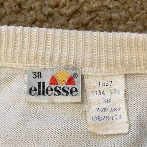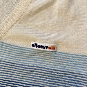 VTG 90s Ellesse V Neck Sweater Cream/Blue Stripes Soft Wool Knit Women’s M (38)