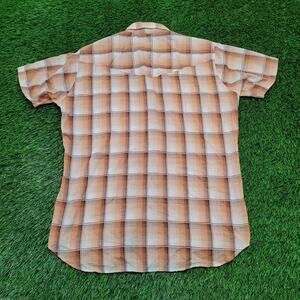 VINTAGE 90S ELY PLAINS PEARL SNAP SHIRT L, ELY WESTERN PLAID SHORT SLEEVE SAWTOOTH, BROWN TAN WESTERN COWBOY SNAP SHIRT, ELY PLAINS ROCKABILLY AMERICANA SHIRT, 90S POLY COTTON WESTERN PEARL SNAP, ELY PLAINS, PEARL SNAP, WESTERN SHIRT, PLAID SHIRT, COWBOY
