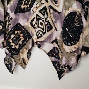 VTG 90s Essay African Mask Tunic Top Sz L Crinkle Handkerchief Artsy Boho Ethnic
