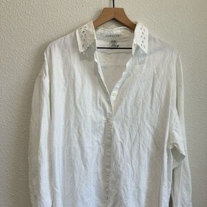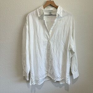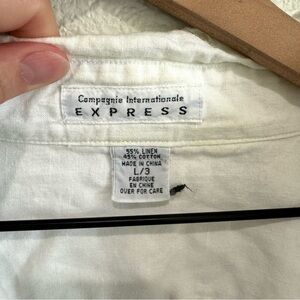 VTG 90's Express Women's Large Linen Blend Button Down Eyelet Coastal Lagenlook