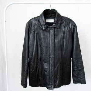 VTG 90s Faux Fur Collar Black Leather Jacket Y2K Leather Jacket Chic Modern Fit