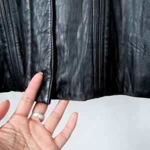 Oversized relaxed fit for easy styling and chic collar that is optional and removable. The jacket is a beautiful quality soft genuine leather and in excellent condition! It is missing it’s waist belt but honestly probably looks better without it for a more modern look. You can style this with EVERYTHING.