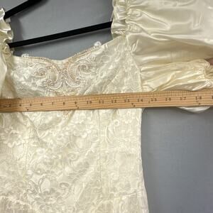 VTG 90s Formal Dress M Ivory Puff Sleeve Wedding Lace Glam Satin Union Prom US