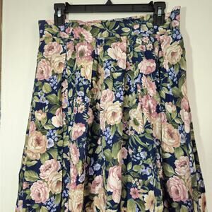 VTG 90s Fritzi Floral Print Pleated High Waist Midi Skirt Sz Large Elastic Waist