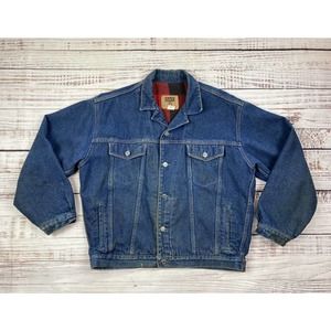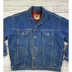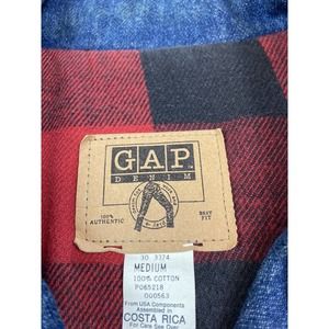 VTG 90s GAP Flannel Lined Denim Jacket Buffalo Plaid Trucker Distressed Sz M.