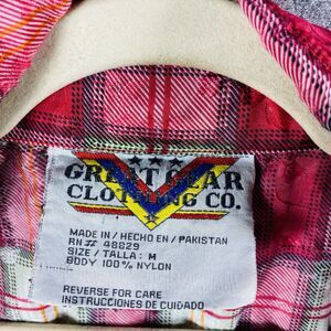 The product is a VTG 90s Great Gear Clothing nylon pink jacket windbreaker in women's medium size. It features a pink color and a 90s theme, perfect for those looking to add a pop of color and retro style to their wardrobe. The jacket is a practical choice for windy weather conditions, with its windbreaker style providing protection and comfort. Made from durable nylon material, this jacket is both stylish and functional for everyday wear.