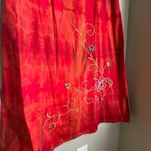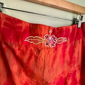 VTG 90s Gemini A-Line Midi Skirt Tie Dye Red Floral Embroidery Fairy Whimsigoth