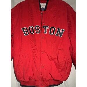 VTG 90s Genuine Merchandise G-lll Sports by Carl Banks Men's Boston Red Sox Baseball MLB Bomber Jacket snap closure, outer pockets one inside pocket