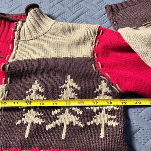 VTG 90's Grandma Chic 1/4 Zip Sweater Cottage Trees Wool Ramie Red Brown Small