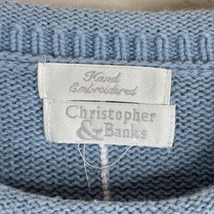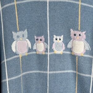 VTG 90s Granny Sweater L Embroidered Owl Hand Knit Windowpane Cottage Blue Twee