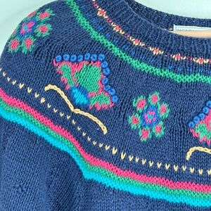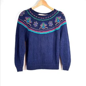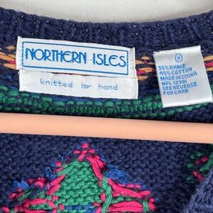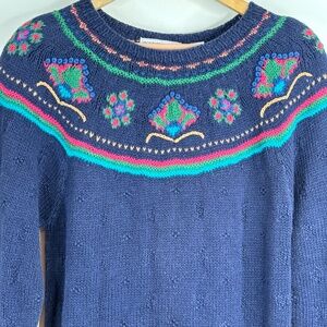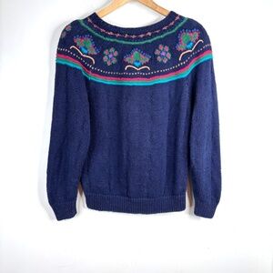 VTG 90s Granny Sweater M Embroidered Hand Knit Northern Isles Floral Fair Isle
