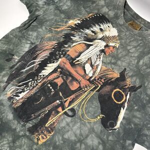VTG 90s Green Tie Dye Native American Horse Rankokus Reservation USA Made Sz XXL