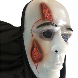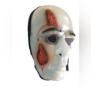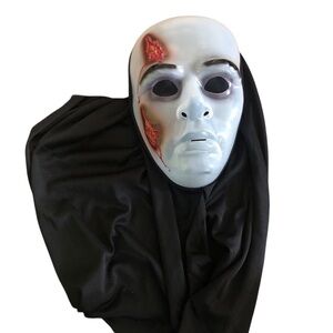 VTG 90’s Halloween Ghoulish Hard Sheer White Plastic Mask Black Head Covering Scary Costume