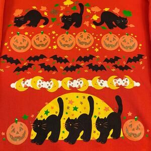 VTG 90s Halloween Sweatshirt Orange size XL Cats Bats Pumpkins Cottage