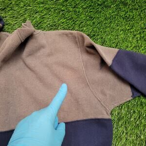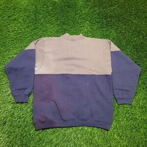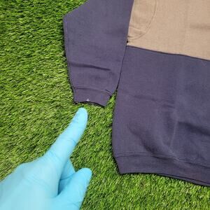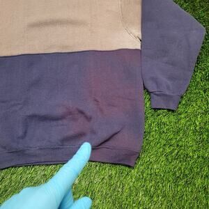 VTG 90s Hanes Color Block Split Sweatshirt Mens Large USA Made Two Tone Heavyweight Crewneck Pullover Halfsies Blank (no graphic) Navy Blue Grey Brown Taupe Faded 50/50 Faded Soft Cozy Boxy Fit Classic Fit Minimalist
