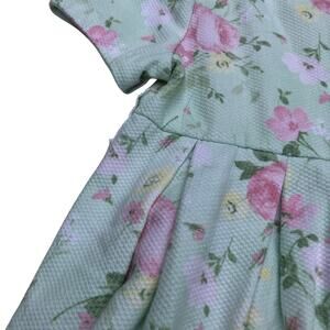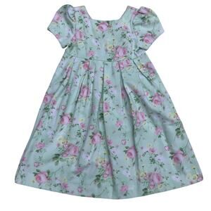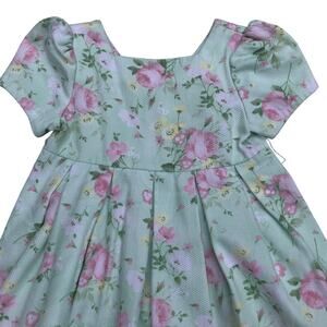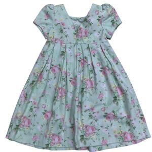 VTG 90s Hartstrings Dress Girls 4 Cap Sleeve Green Pastel Floral Easter Spring