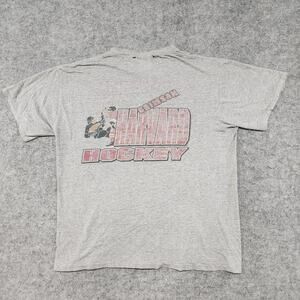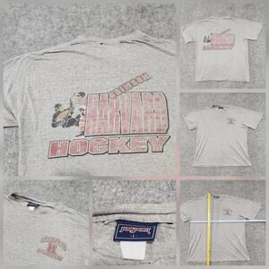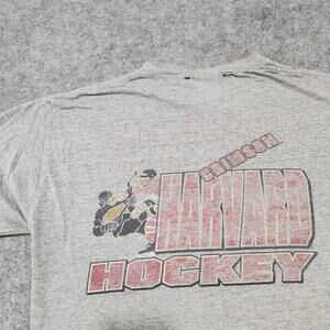VTG 90s Harvard Univeristy Crimson Hockey Men L Large Distressed Graphic T Shirt