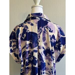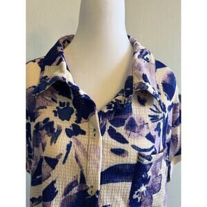 VTG 90s Hawaiian Purple Floral Button Down Shirt Retro Women’s XL Fairy Granny