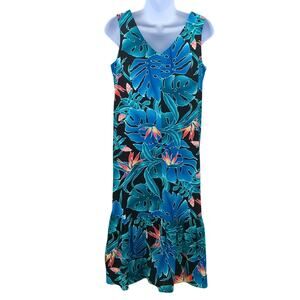 VTG 90s Hilo Hattie Floral Island Midi Dress Resort Cruise Hawaiian Vacation