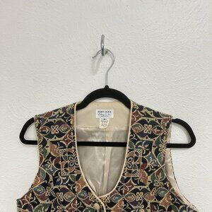 VTG 90s Hobby Horse Western Equestrian Show Vest Tapestry Geometric Floral Sz M