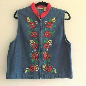 VTG 90’s Holiday Christmas Poinsettia Jean Vest