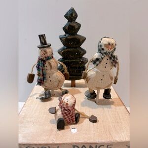 VTG 90s Holiday Christmas Snow Dance, Let it Snow, Snowman Family Wooden Decor