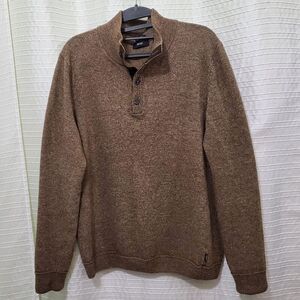VTG 90s Hugo Boss Mock Neck Henley Sweater Wool Blend Brown Heather Men's M