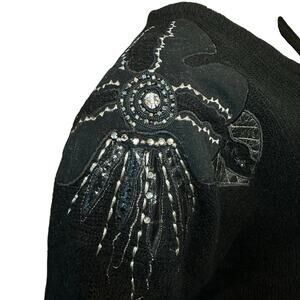Vintage 90's IB Diffusion Women's Size Small  Embellished Leather & Rhinestones Sweater-Silk Angora Lambs Wool Blend Black Crewneck Whimsigoth Bling Comfy Glam Goth