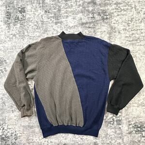 VTG 90s Imprint Sweatshirt Mens Medium Gray Colorblock Leather Patch Jumper
