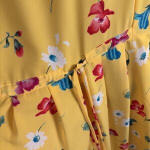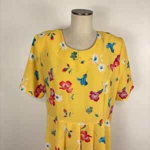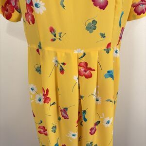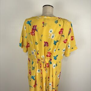 VTG 90s JD Stone Womens 18W Yellow Bright Floral Short Sleeve Midi Dress FLAWED