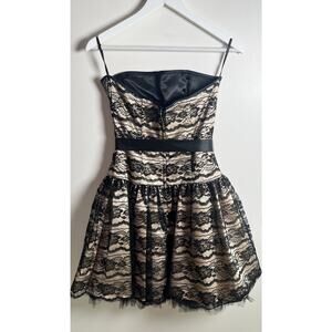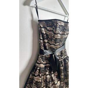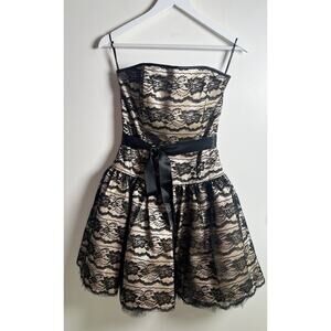 VTG 90s JESSICA MCCLINTOCK GUNNE SAX Dress Strapless Black Lace Overlay Mini Sm