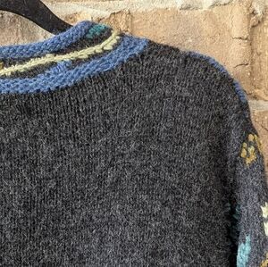 VTG 90s Jillian Jones Hand Knit Floral Wool Button Front Cardigan Size Small