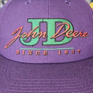 VTG 90s John Deere Hat Snapback Spell Out Logo Purple K Products Made In USA