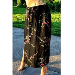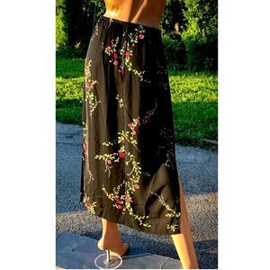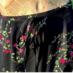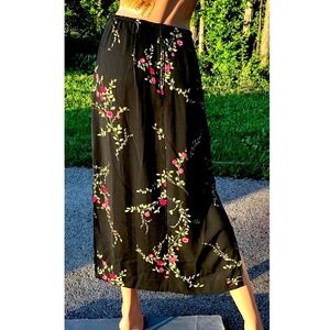 VTG 90s KATHIE LEE Collection Black~Red & Pink Floral A-Line Maxi Skirt~ 6