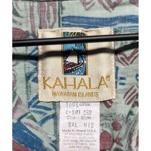 VTG 90s Kahala Hawaiian Shirt 2XL USA Reverse Print Geometric Aloha Camp Shirt