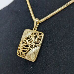 VTG 90s Kenneth Cole Pendant Necklace Pearlized Enamel Sage Gold Tone 15.5 inch