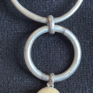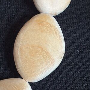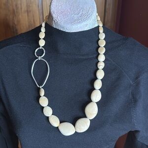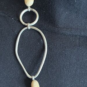 VTG 90s Kenneth Cole long wood bead Necklace silver tone hardware 13”