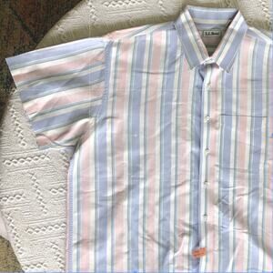 Vintage 90s L.L. Bean Striped Short Sleeve Dress Shirt XL Pastel Classic Preppy