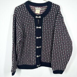 VTG 90s L.L. Bean Wool Blend Nordic Birdseye Silver Clasp Cardigan Sweater, OBA30