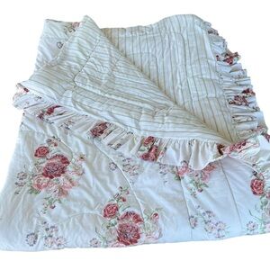 VTG 90s Laura Ashley Reversible Ruffled Twin Comforter Cottage Floral Stripe USA
