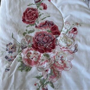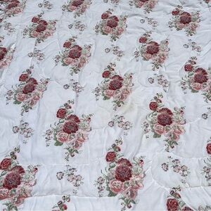 Overall, the comforter is in nice condition that shows some minor signs of age and use. It has some small, untreated marks that look like they could come out with some TLC, a small pinhole found in the ruffle and some of the quilting has come undone. These don’t stand out much, due to the pattern.