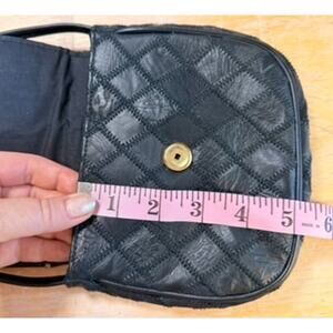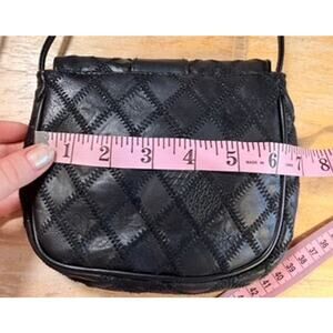 VTG 90s Leather Patchwork Crossbody Bag Wallet Black Small Travel City Retro Fun