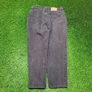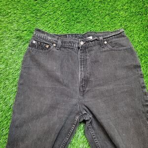 Vintage 90s Levis 522 womens USA made black jeans high rise tapered relaxed fit mom jean grunge faded denim plus size shop now