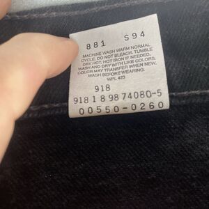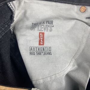 Get ready to rock the vintage look with these classic black Levi's 550 jeans. The relaxed fit and tapered leg design provide a comfortable and stylish fit for any occasion. Made from high-quality cotton denim fabric, these jeans feature a black wash and 5-pocket design with zipper fly closure. Perfect for men who want to add a touch of 90s radness to their wardrobe, these Levi's 550 jeans are easy to care for and machine washable. With a waist size of 33 inches and inseam of 36 inches, they are a great fit for those who want a mid-rise, regular fit.
