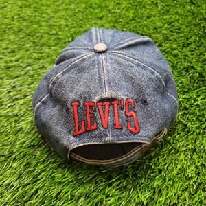 90S STREET CORE, RETRO LEVIS ACCESSORY, CLASSIC DENIM STYLE, JEAN MATERIAL HEADWEAR, OLD SCHOOL CASUAL FIT, ICONIC RED TAB LOGO, LEGENDS NEVER DIE EMBROIDERY, METAL BUCKLE STRAPBACK, SKATER AESTHETIC, DARK WASH BLUE